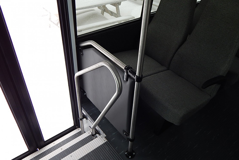 Smooth operating, ADA-compliant wheelchair lifts from suppliers including Braun and Ricon are available for any of Micro Bird’s buses.